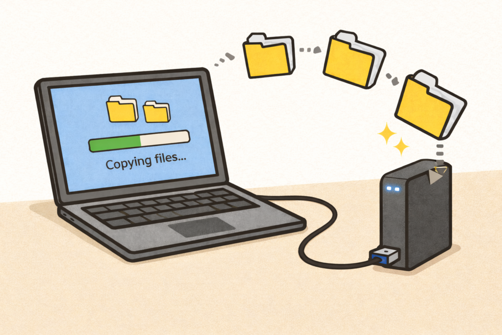 ファイルのバックアップとは、パソコンやスマートフォンに保存されている大切なデータを、故障・誤削除・災害などのトラブルに備えて別の場所に複製して保管することを指します。