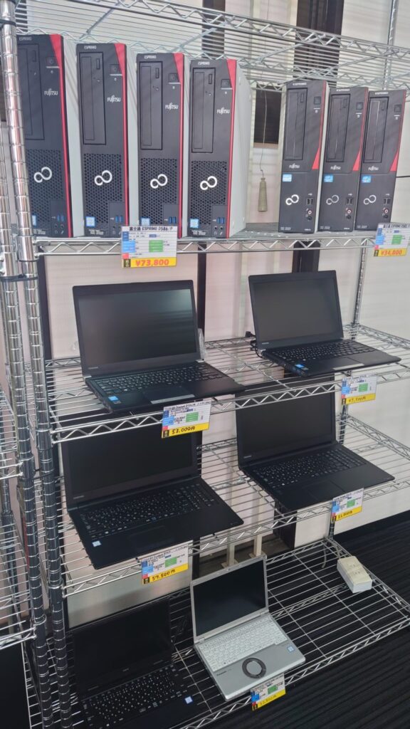量販店で新品のパソコンを買おうとしたけど納期が長くて困った、というお声を耳にしておりますが、当店では中古だけではなく、新品のパソコンも多数在庫を置いております。