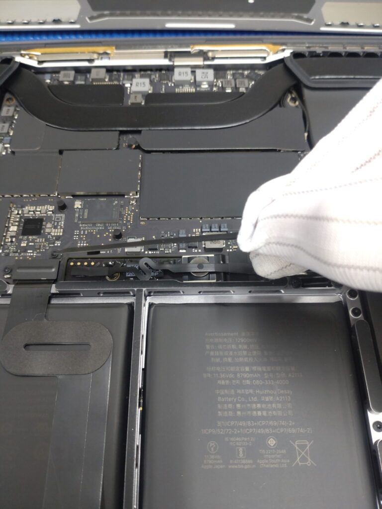 そして、MacBookといえば、小型軽量のため細かなパーツが多く、天板の交換にもかなりの工程があります。パーツをなくしたり壊さないように、細心の注意が必要です。