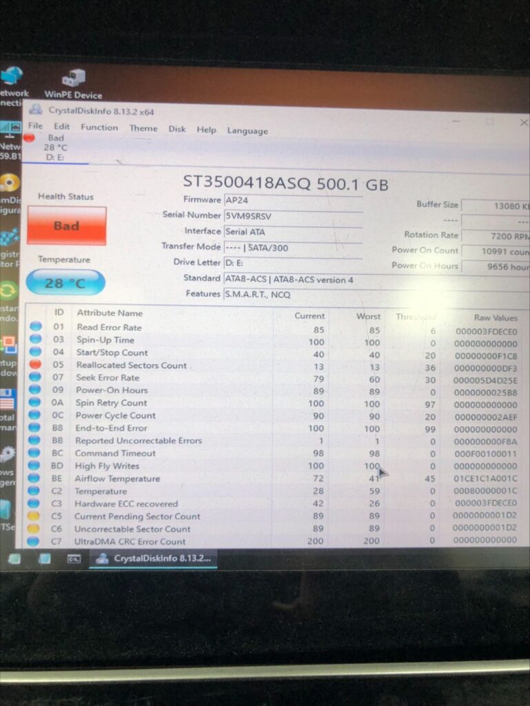 早速HDDを検査してみるとセクタ不良が出ており