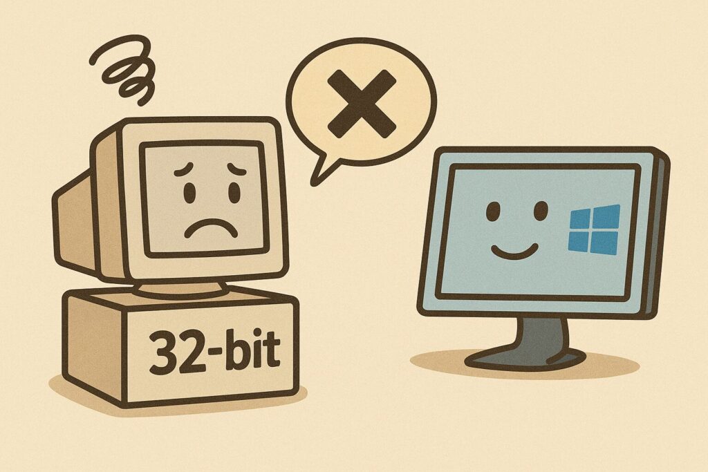 先日、あるお客様より「お引越し」と「Windows11へのアップグレード」のご依頼をいただきましたが、残念ながらご利用中の環境が「32bit OS」だったため、直接のアップグレードは実施できませんでした。